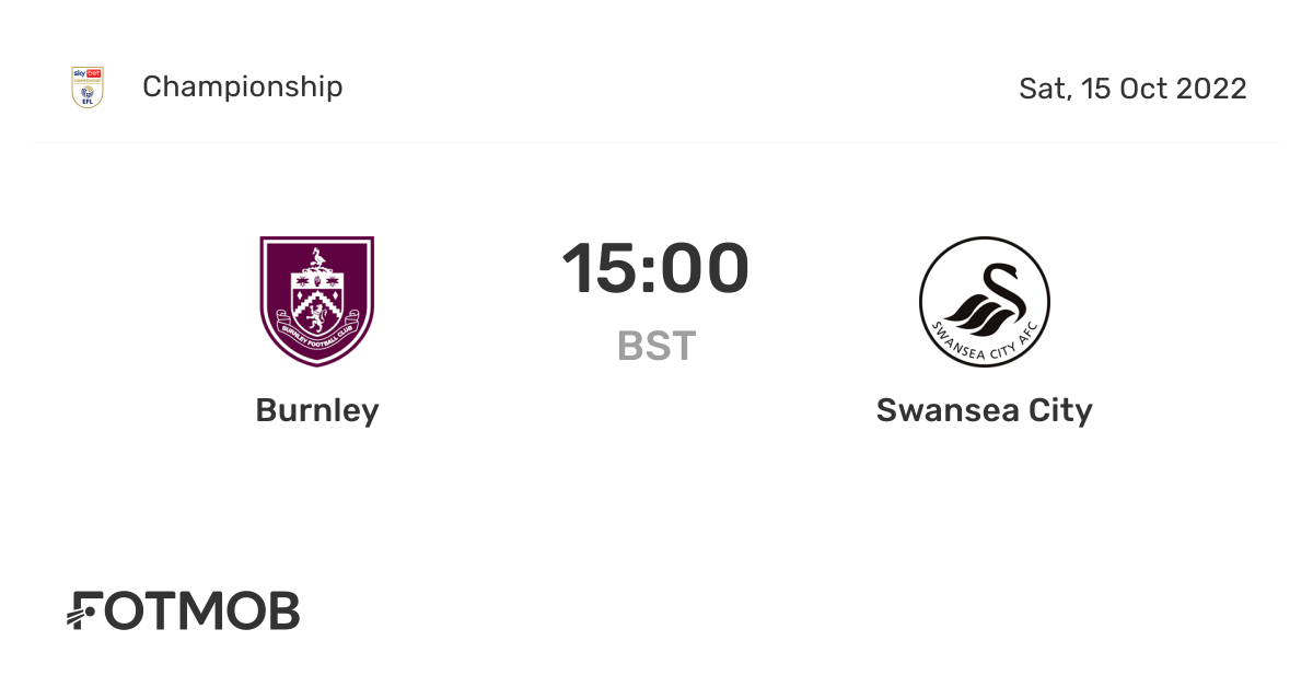 Burnley Vs Swansea City Championship On Sat Oct 15 2022 14 00 Utc